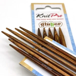 Zeitlose Holznadeln im angesagten gebeizten Treibholzlook. Ginger Sockenstricknadeln sind ideal für Socken, Mützen und kleine, in Runden gestrickte Projekte.