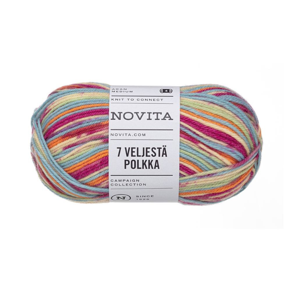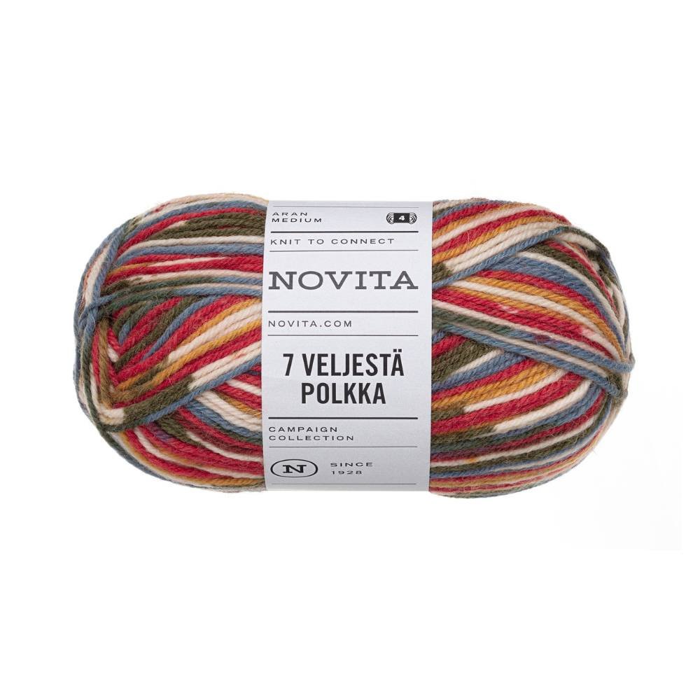 Novita 7 Veljestä Polkka | 80% Wolle – Strapazierfähiges Sockenwoll-Klassiker mit Farbeffekt
