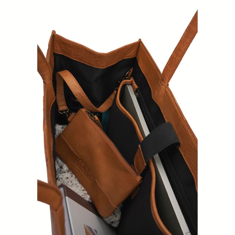 Bina XL ist die perfekte Kombination aus stilvollem Shopper und funktionaler Arbeitstasche. Dank des gepolsterten Fachs mit Klettverschluss bietet die Tasche zusätzlichen Schutz für deinen Laptop. Darüber hinaus verfügt die Tasche über eine Reißverschlusstasche auf jeder Seite, in der du deine Schlüssel, dein Portemonnaie und andere kleine Gegenstände übersichtlich und leicht zugänglich aufbewahren kannst. Die Tasche verfügt außerdem über ein separates Fach für eine Trinkflasche oder ein paar Wollknäuel, was sie zur perfekten Tasche für Strick- und Häkelprojekte für unterwegs macht.