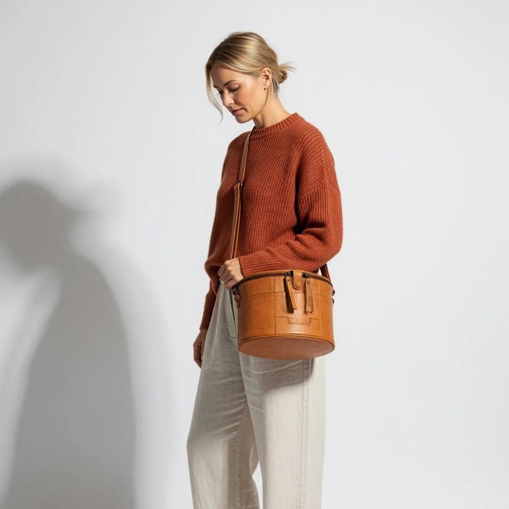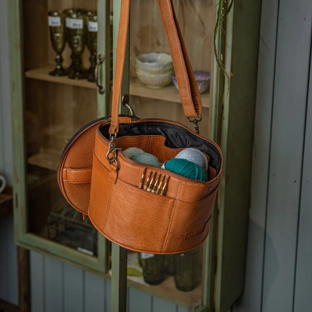 Enturn von muud ist unsere wunderschöne, handgefertigte Projekttasche aus edlem Leder. Für alle, die das Sticken, Häkeln und Stricken lieben. Die Tasche ist mit feinen Details gestaltet, die es dir kinderleicht machen, deine kreativen Projekte unterwegs mitzunehmen. Zuhause kannst du die hübsche Tasche auch zur Aufbewahrung von Garn und Zubehör verwenden.