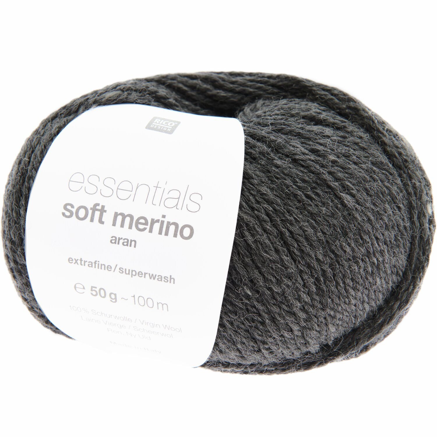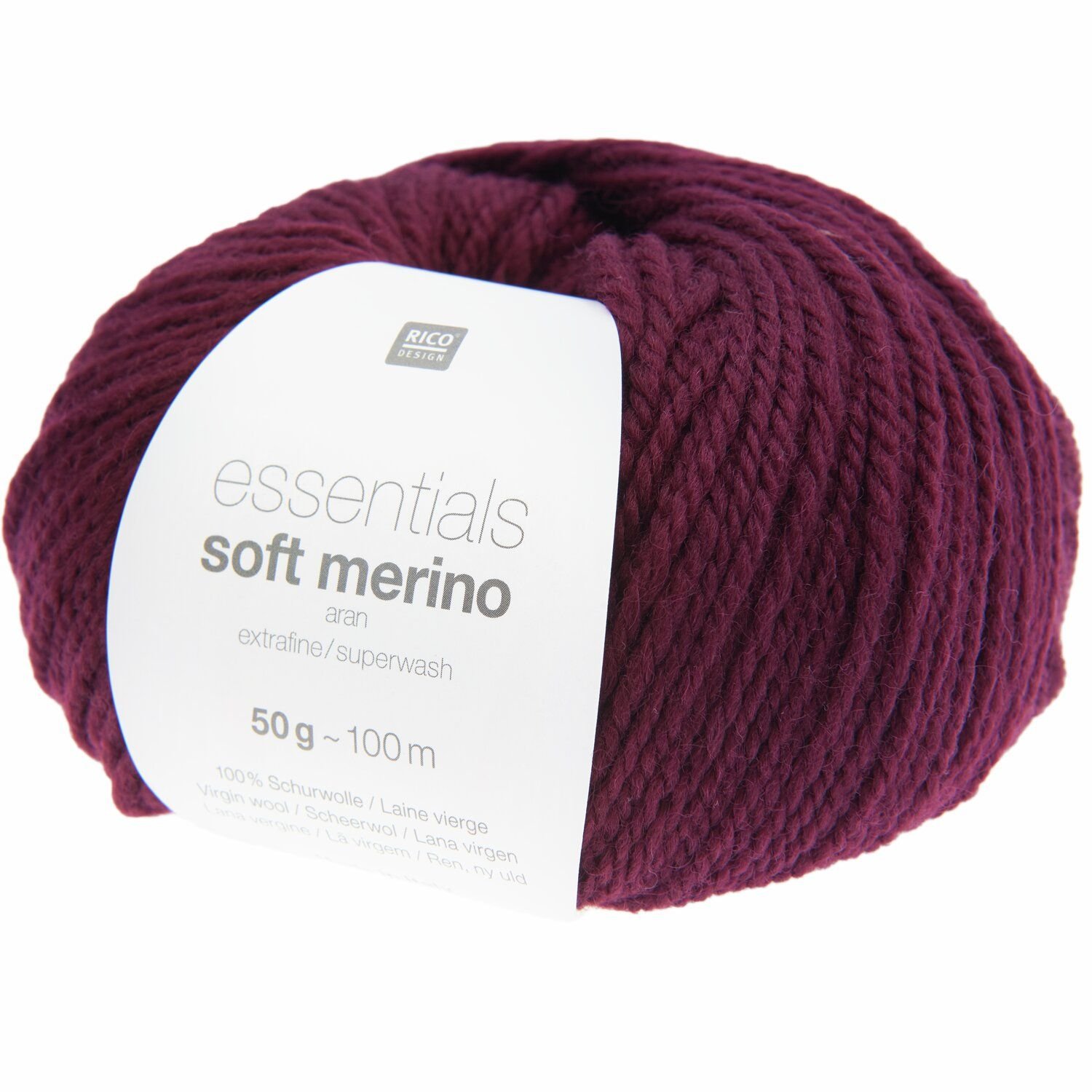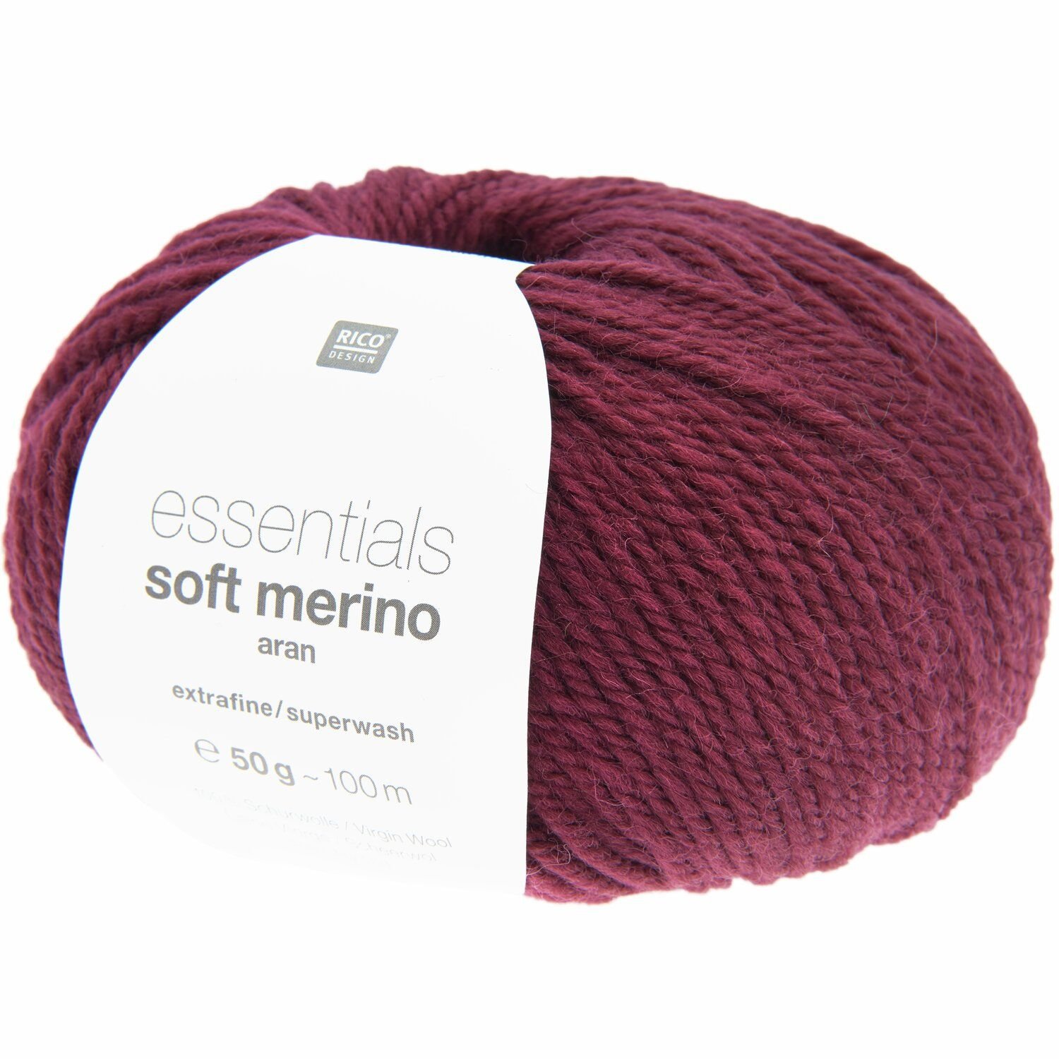 Die Essentials Soft Merino aran von Rico Design ist eine reine Schurwolle und eignet sich für Oberbekleidung, Accessoires und Homedeko. Die Qualität aus Schurwolle lässt sich wunderbar leicht verstricken und ist in zahlreichen Farben erhältlich.
