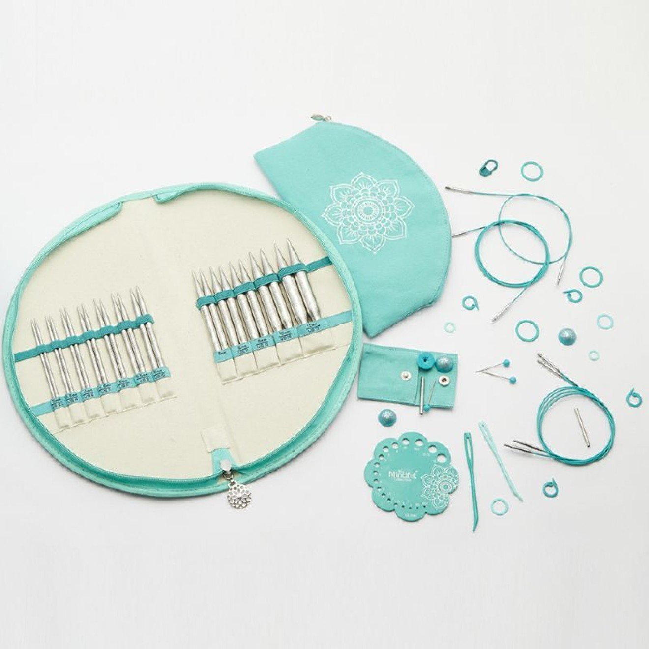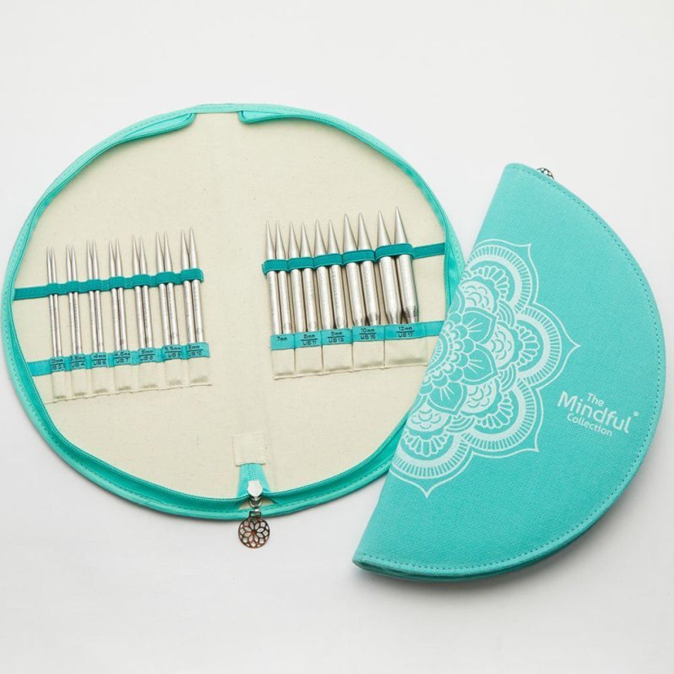 Diese Mindful-Kollektion wird von Dankbarkeit definiert und beinhaltet12 Größen auswechselbare Nadelspitzen. Die hochwertigen Nadelspitzen aus Edelstahl sind in einem runden Stoffetui mit floralem Design in den Themenfarben der Kollektion verpackt.