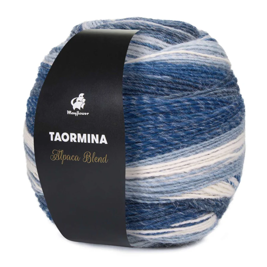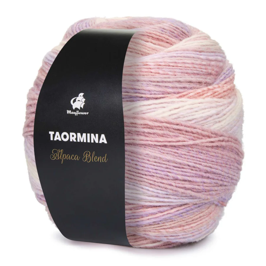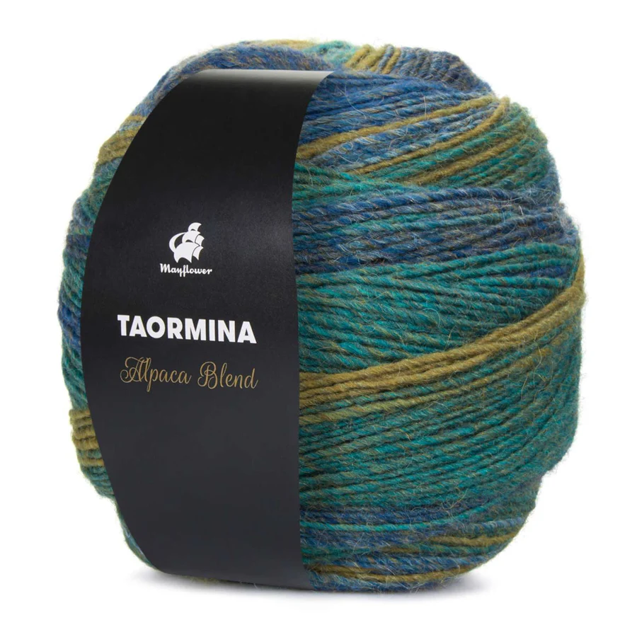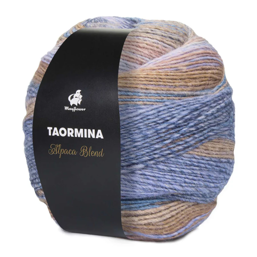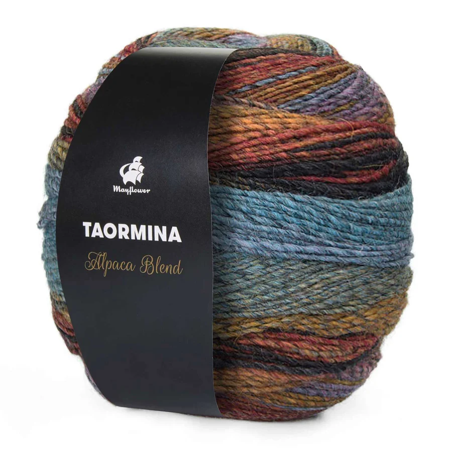 Das wunderbar farbenprächtige Mayflower Taormina ist sowohl weich als auch strapazierfähig, da es unter anderem aus den weichsten Alpakafasern gesponnen wird. Durch den großen, flauschigen Knäuel hat Taormina einen langen, schönen Mustersatz mit einem Farbverlauf in einem gestreiften Muster.