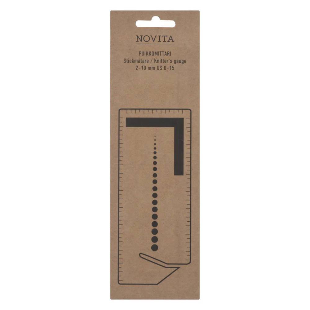 Das Novita-Nadelmaß ist ein großartiges Werkzeug zum Überprüfen der Nadelstärke. Es verfügt außerdem über ein Lineal, mit dem Sie Ihre Maschenprobe messen können, und wird mit einem praktischen Fadenschneider geliefert. Das Nadelmaß kann Stricknadeln von 2 mm bis 10 mm messen.