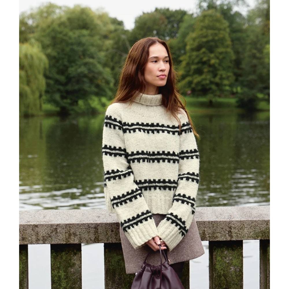 Der Ridge Sweater wird von oben nach unten in Atlas mit einem Muster aus Børstet Alpakka gestrickt. Die Garnkombination verleiht dem Pullover eine spannende Struktur und einen dezenten 3D-Effekt. Ein moderner Pullover mit schöner Passform und raffinierten Details.