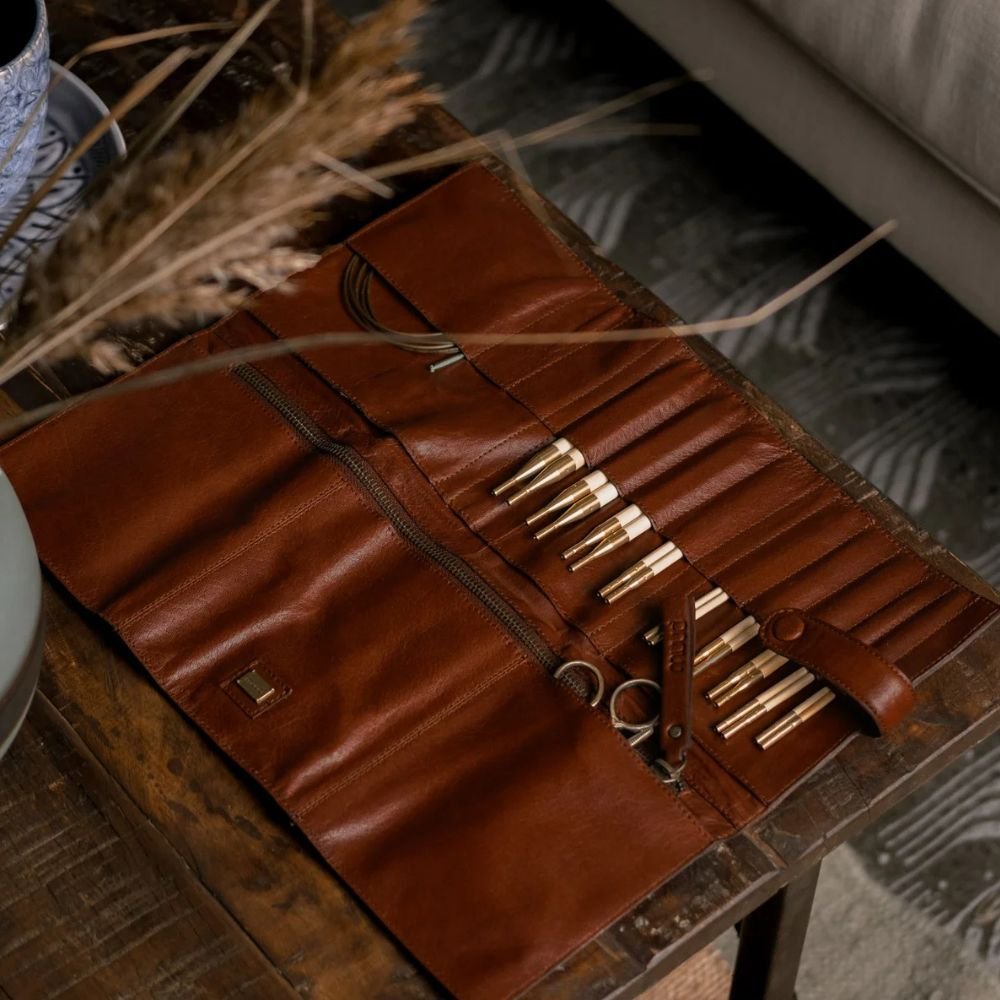 Das Stockholm Etui ist handgefertigt aus hochwertigem Leder, das mit der Zeit immer schöner wird, und vereint Ästhetik mit Funktionalität. Das durchdachte Design hält Ihre wertvollen Nadeln sicher an ihrem Platz. Das Etui bietet Platz für 12 Sets austauschbarer Rundstricknadeln in den Größen 3 mm bis 8 mm, oder bis zu 12 mm, wenn Sie jeweils eine Nadel in den beiden größten Nadeltaschen aufbewahren. Zusätzlich verfügt es über drei Taschen mit Platz für Seile sowie eine große Reißverschlusstasche für weiteres Zubehör wie Schere, Maßband und Maschenmarkierer. Perfekt für alle, die bei Qualität und Design keine Kompromisse eingehen möchten.