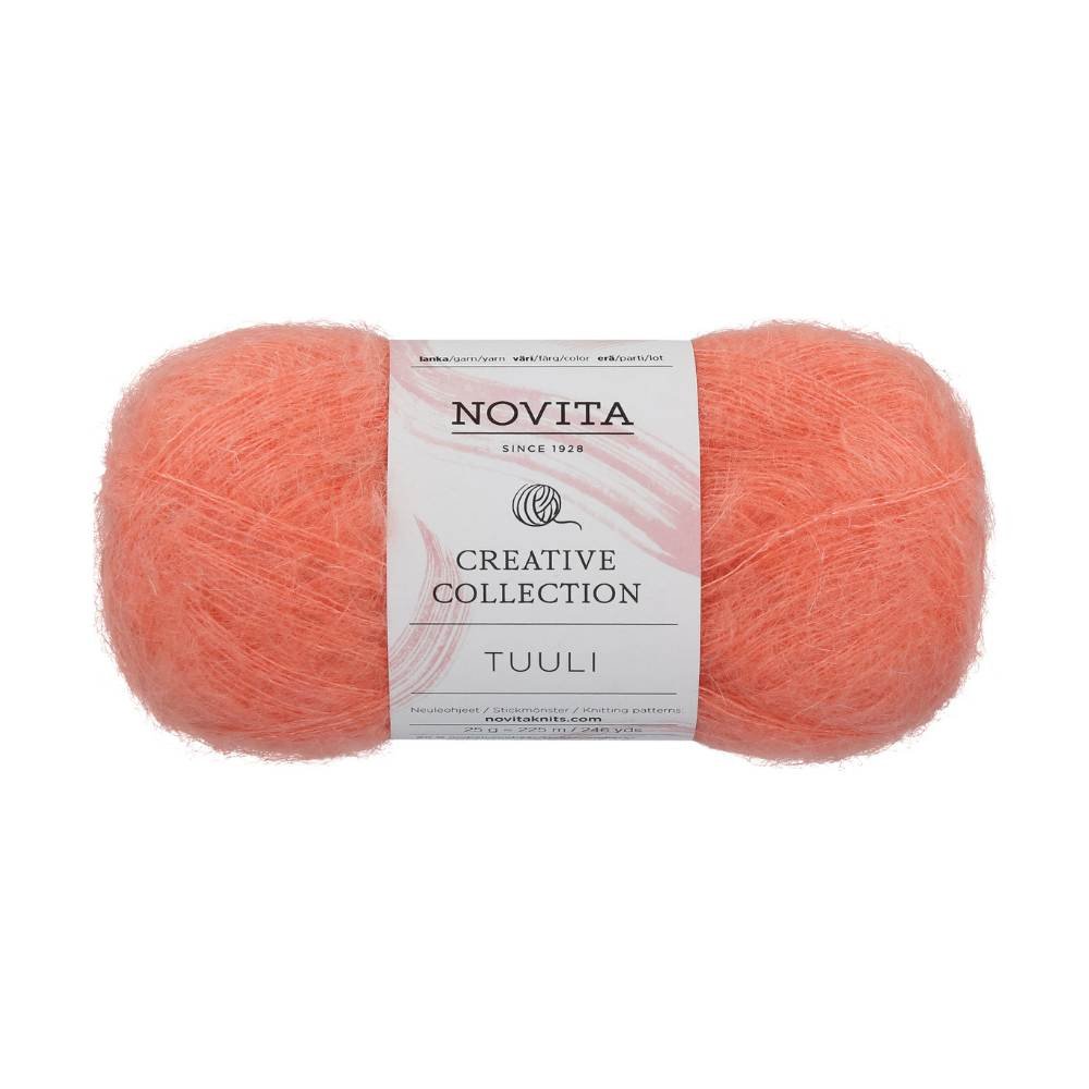 Das Garn Tuuli von Novita ist ein wundervoll weiches Garn, das sowohl solo als auch mit einem anderen Garn zusammen verstrickt werden kann. Das Garn besteht aus 60 % Mohair und 40 % Viskose, welches dem Garn einen feinen und vornehmen Schimmer verleiht. Das sich luxuriös anfühlende Garn eignet sich sowohl für Accessoires als auch für Pullover, Strickjacken oder Schals. Die Herstellung des Garns ist zertifiziert nach Oeko-tex® STANDARD 100.