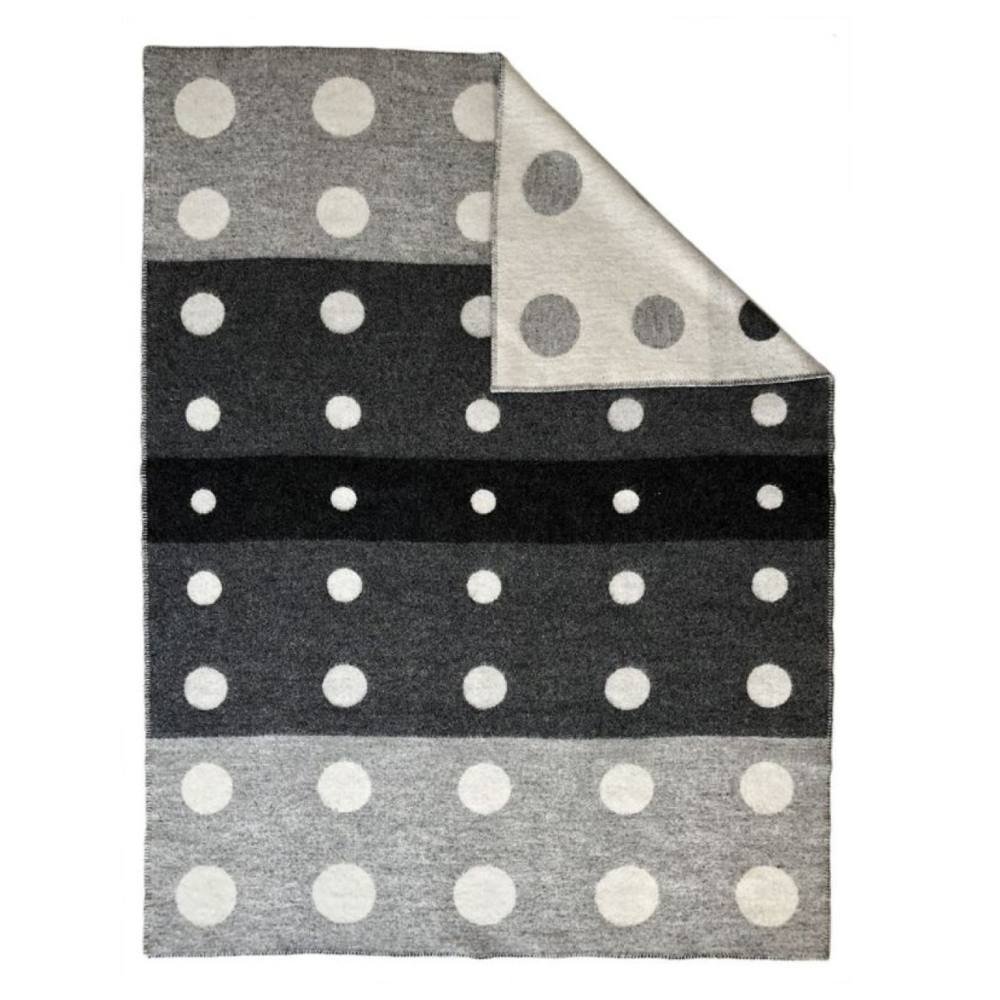 Die isländische Wolldecke „Fjarski“ bedeutet auf Isländisch „Entfernung“. Diese Decke zeichnet sich durch ein Punktmuster mit weißen Punkten auf dunkel- und hellgrauem Hintergrund aus. Dank ihrer Jacquard-Webart können Sie zwischen der grauen Seite mit weißen Punkten und der weißen Seite mit grauen Punkten wechseln, da das dekorative Muster auf beiden Seiten mit umgekehrten Farben sichtbar ist.